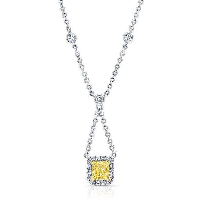WHITE AND YELLOW GOLD ELEGANT RADIANT FANCY YELLOW DIAMOND PENDANT