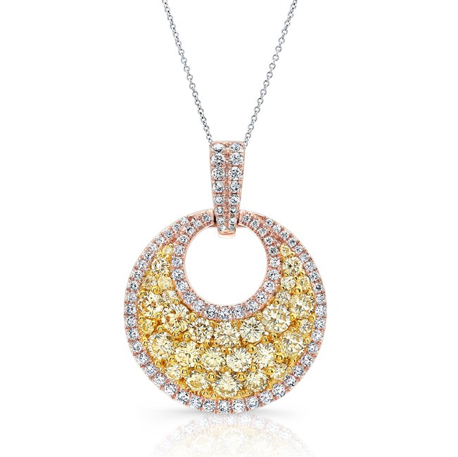 ROSE GOLD CONTEMPORARY FANCY YELLOW ROUND DIAMOND CLUSTER PENDANT