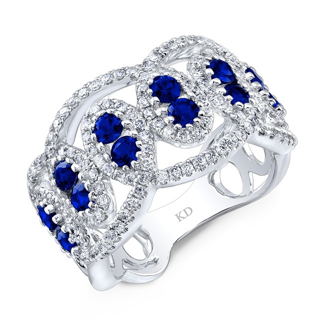 HIGH QUALITY NATURAL COLOR 18K WHITE GOLD ROUND SAPPHIRE TWISTED DIAMOND BAND, COMPLEMENTED WITH ROUND WHITE DIAMONDS AND FEATURES 1.71 CARAT TOTAL WEIGHT