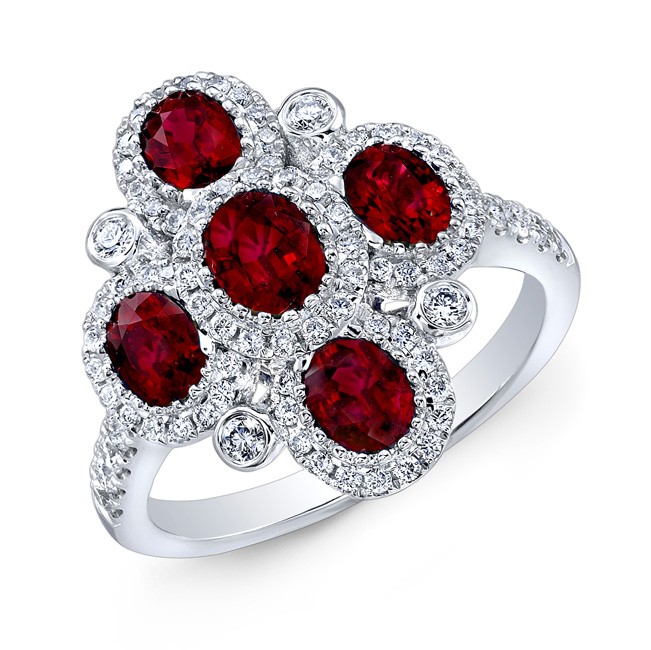 Side Stones 5 Oval Rubies & 83 Rd White Diamonds