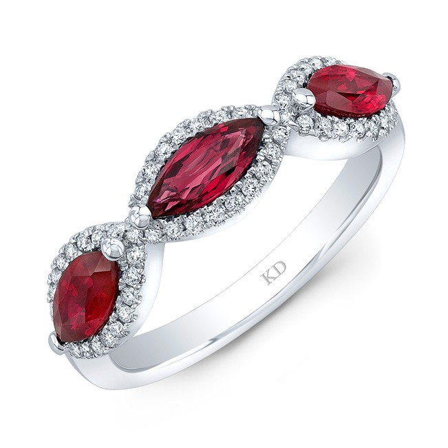 Side Stones 3 Oval Rubies & 58 Rd White Diamonds