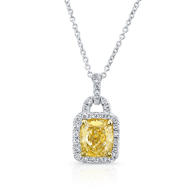 WHITE AND YELLOW GOLD CUSHION FANCY YELLOW DIAMOND PENDANT
