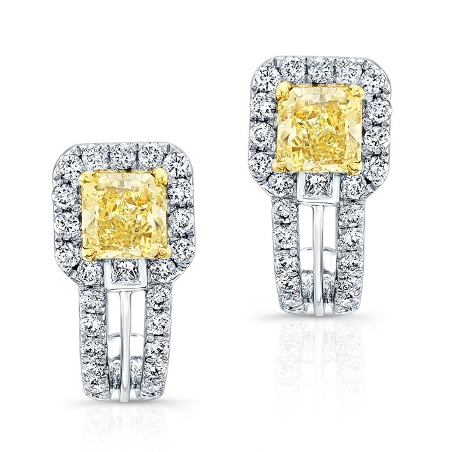 WHITE AND YELLOW GOLD FANCY YELLOW RADIANT DIAMOND EARRINGS