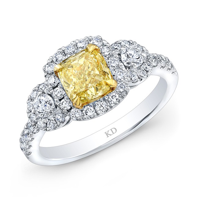 WHITE AND YELLOW GOLD FANCY YELLOW CUSHION DIAMOND ENGAGEMENT RING