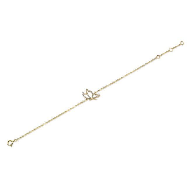 14K YELLOW GOLD STYLISH BUTTERFLY DIAMOND BRACELET, DESIGNED WITH ROUND WHITE DIAMONDS AND FEATURES 0.13 CARAT TOTAL WEIGHT