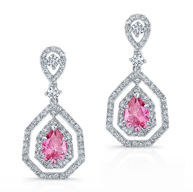 WHITE GOLD ELEGANT PINK ENHANCED PEAR DIAMOND DROPLET EARRINGS