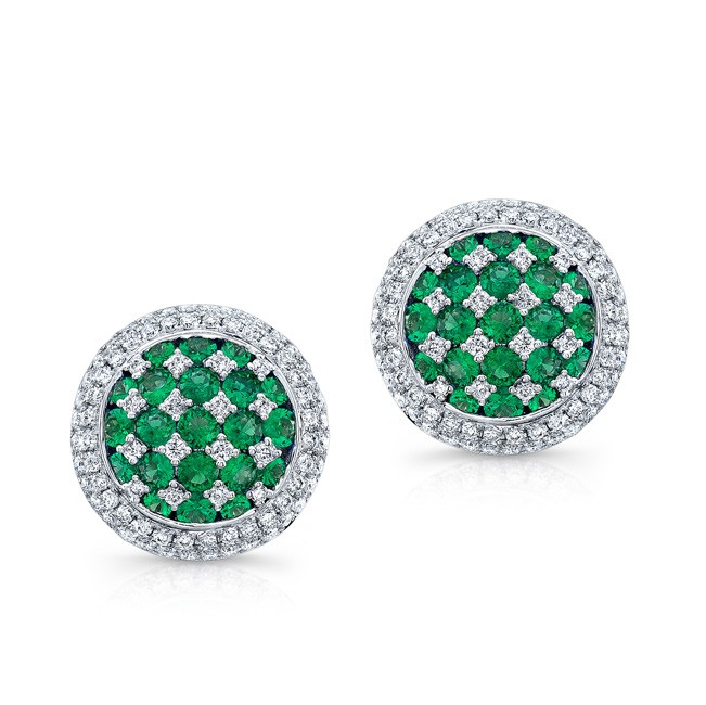 NATURAL COLOR WHITE GOLD EMERALD CHECKERS DIAMOND EARRINGS