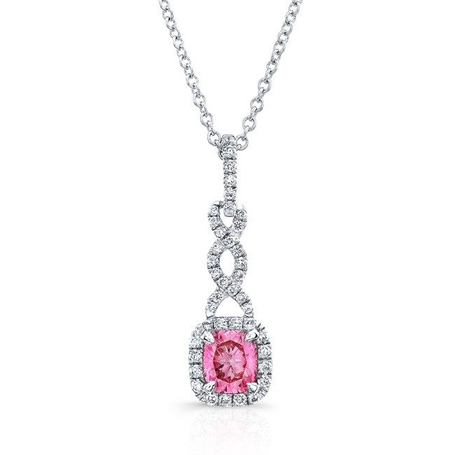 WHITE GOLD TWISTED PINK ENHANCED CUSHION DIAMOND PENDANT