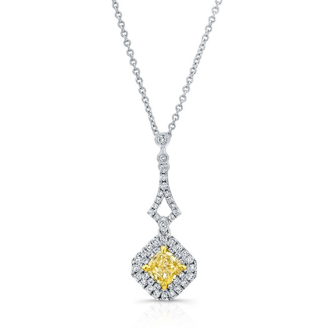 WHITE AND YELLOW GOLD ELEGANT FANCY YELLOW RADIANT DIAMOND PENDANT
