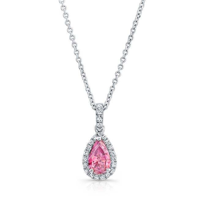 WHITE GOLD ELEGANT PINK ENHANCED PEAR DIAMOND PENDANT
