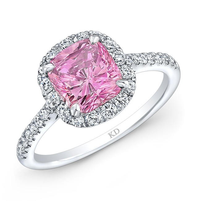 WHITE GOLD CLASSIC PINK ENHANCED CUSHION DIAMOND ENGAGEMENT RING