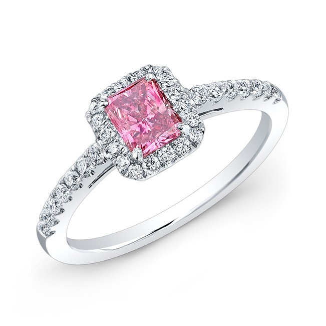 WHITE GOLD CLASSIC PINK ENHANCED RADIANT DIAMOND ENGAGEMENT RING