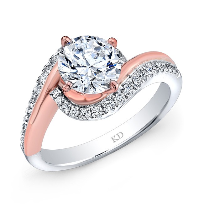 18K WHITE & ROSE GOLD FASHION SWIRLED DIAMOND BRIDAL RING, SURROUNDED BY ROUND WHITE DIAMONDS AND FEATURES 0.30 CARAT TOTAL WEIGHT