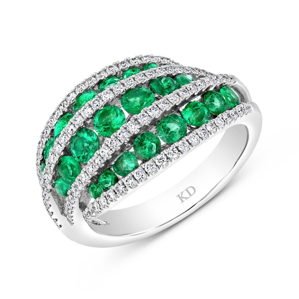 HIGH QUALITY NATURAL COLOR 18K WHITE GOLD FASHION ROUND EMERALD DIAMOND BAND DESIGNED WITH FOUR ROWS OF ROUND WHITE DIAMONDS, FEATURES 1.78 CARAT TOTAL WEIGHT