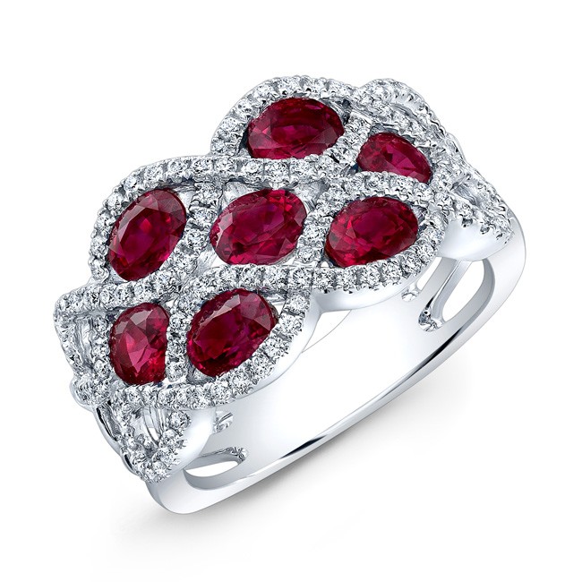 HIGH QUALITY NATURAL COLOR 18K WHITE GOLD FASHION OVAL RUBY DIAMONDS BAND, DESIGNED WITH ROUND WHITE DIAMONDS, FEATURES 2.47 CARAT TOTAL WEIGHT